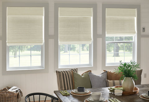 Tailor your windows to reflect your connection to nature with our customizable woven wood shades. Choose from an array of natural hues and weaves to create a look that complements your decor, bringing the beauty of the outdoors into your home.