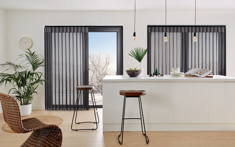 Achieve a sleek and stylish design with Allusion Blinds Smart Drape. The unique combination of sheer fabric vanes and opaque panels offers a contemporary and elegant look, creating a statement piece for your windows that seamlessly integrates with modern interiors.