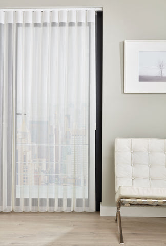 Achieve a sleek and stylish design with Allusion Blinds Smart Drape. The unique combination of sheer fabric vanes and opaque panels offers a contemporary and elegant look, creating a statement piece for your windows that seamlessly integrates with modern interiors.