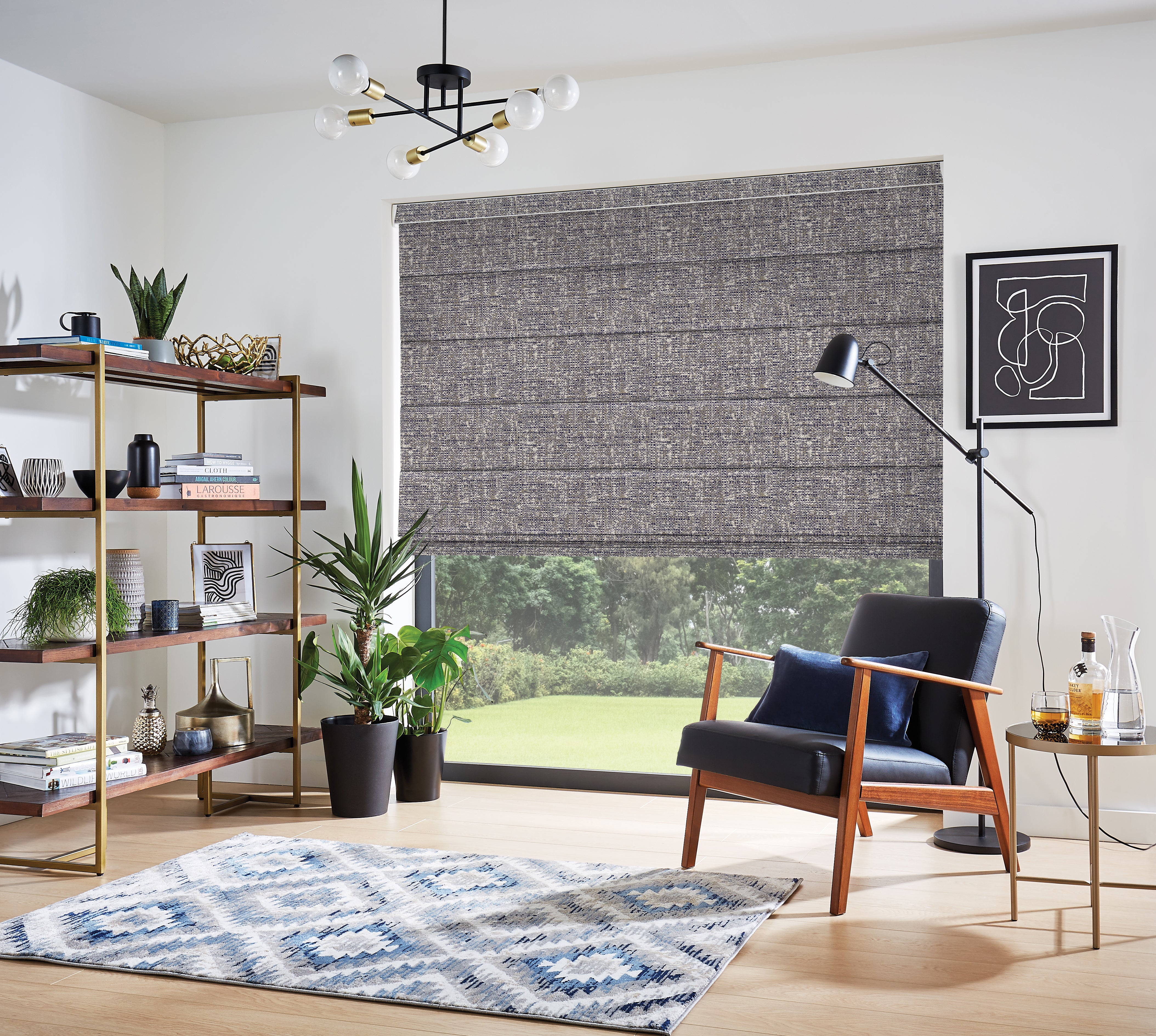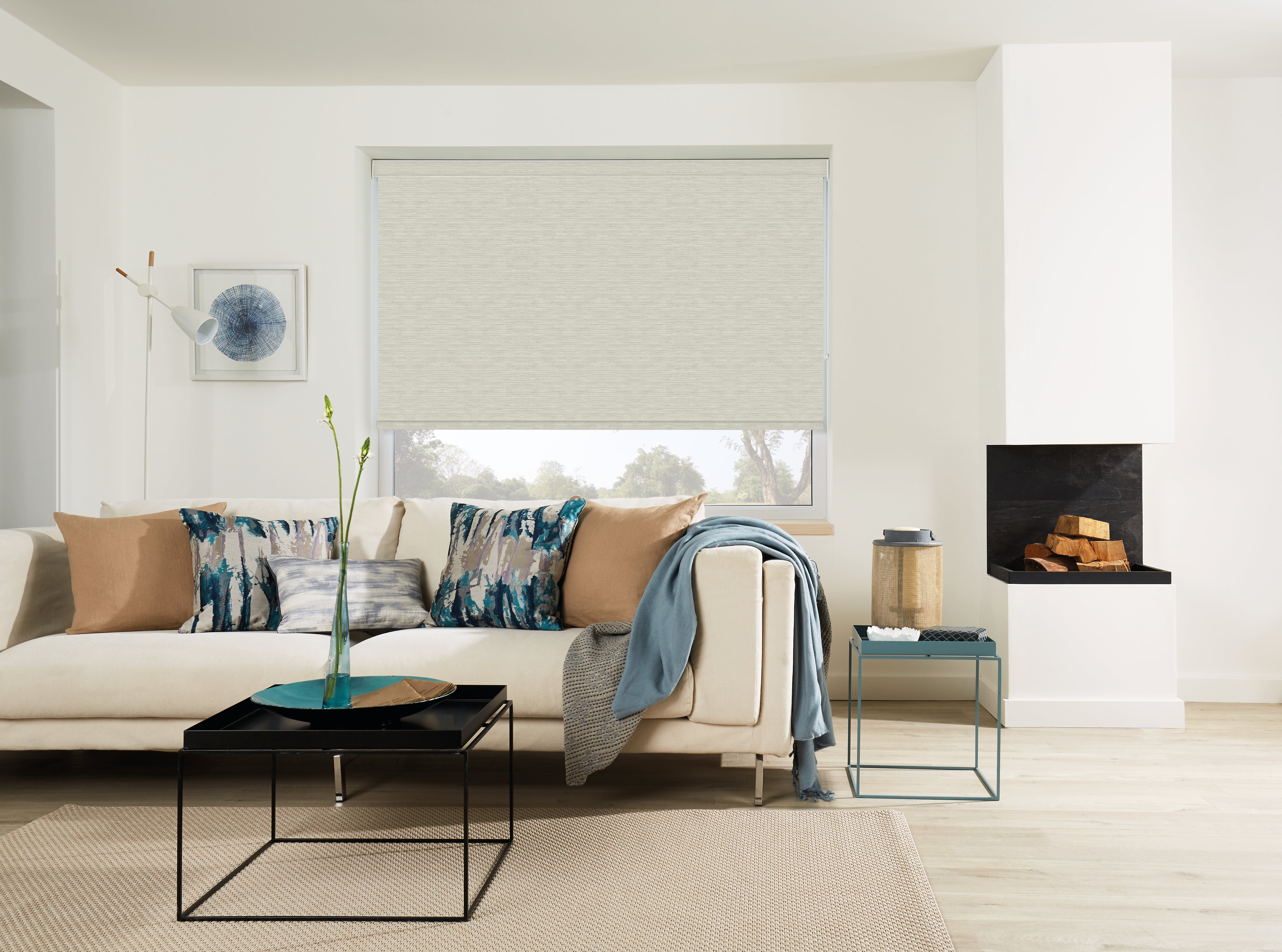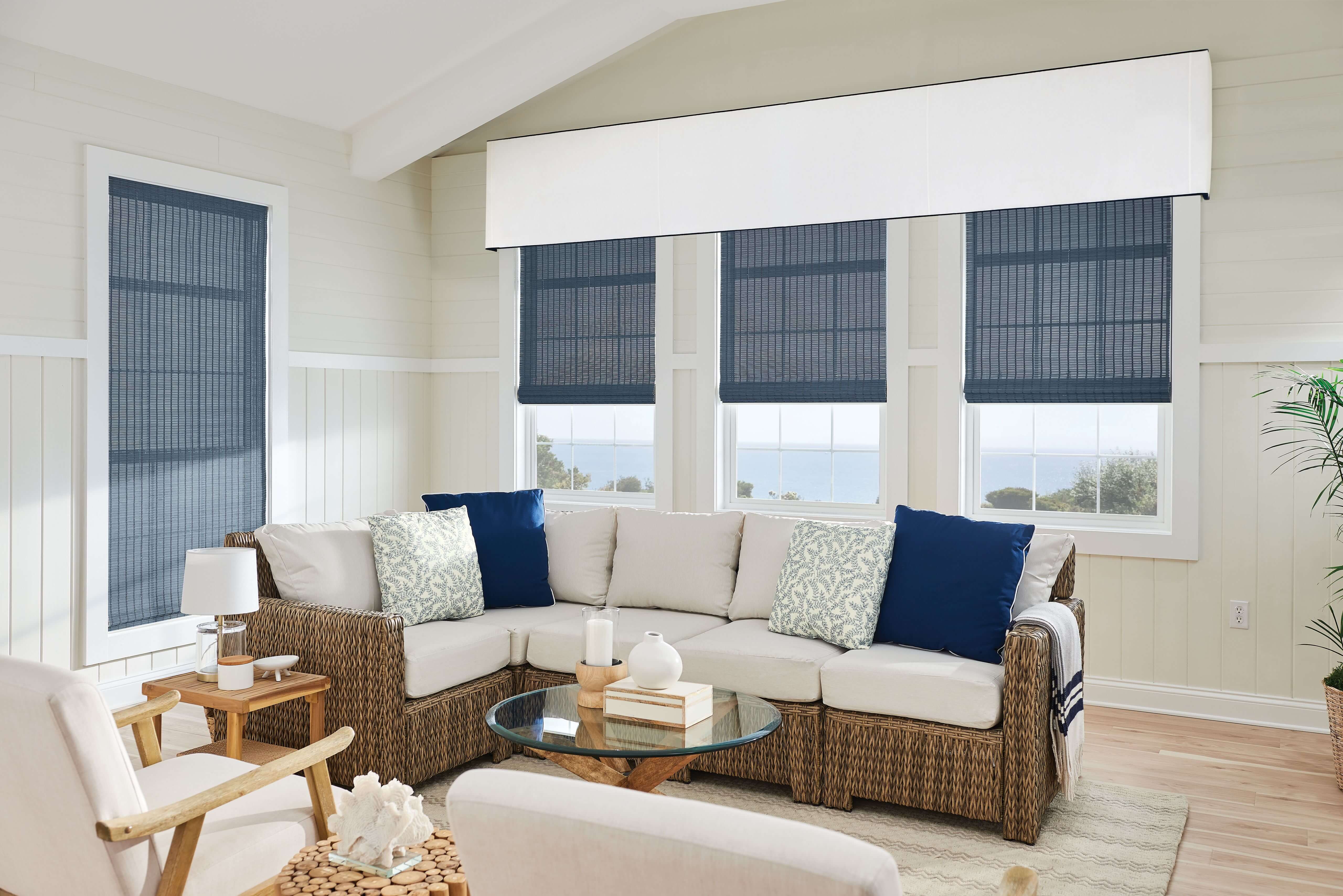 Woven wood Natural shade bluecolor livingroom